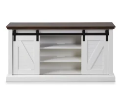 60″ Dark Brown & White Barn Door TV Stand