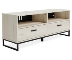 Store and entertain with this TV stand from Real Living. The classic design in a black finish features open compartments for all your media equipment needs as the cabinets and drawer stores away accessories, DVDs and more. It’s a casual addition to a living space, den or basement.