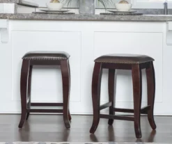 Gleaming bronze nailheads accent the tweed upholstery on this backless counter stool with a crisp shine that brightens any space. Traditional design and materials make this stool an ideal choice for a rustic, farmhouse or traditional space while the clean, sharp lines also suit contemporary spaces.