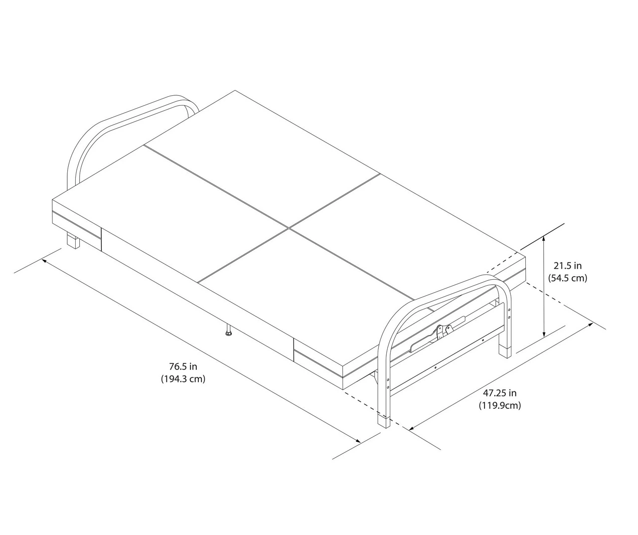 DHP Elbern Black Metal Futon With Black Microfiber Cover