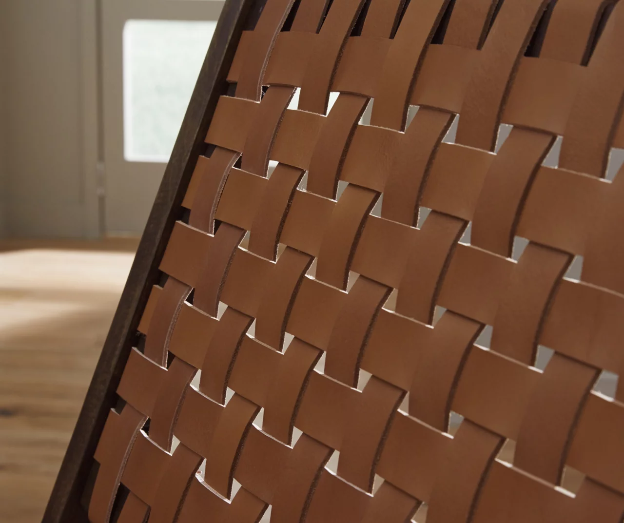 Fayme Camel Armless Leather Woven-Back Lounge Chair