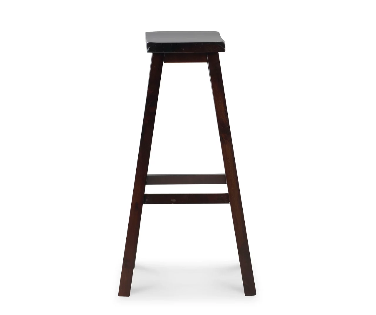 Classic lines and a dark brown finish make this bar stool a perfect choice for any style of home. Timeless and versatile, this stool features a sloping seat and foot rests that add comfort and stability to the design. The rich, gleaming finish complements most color schemes while the classic simplicity suits existing decor with ease.