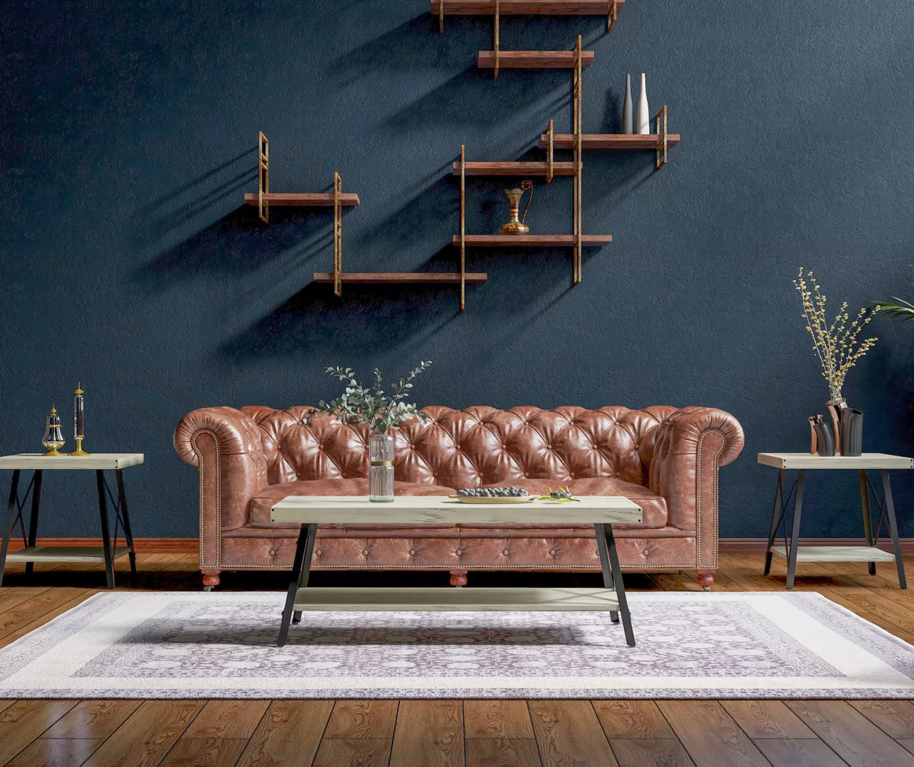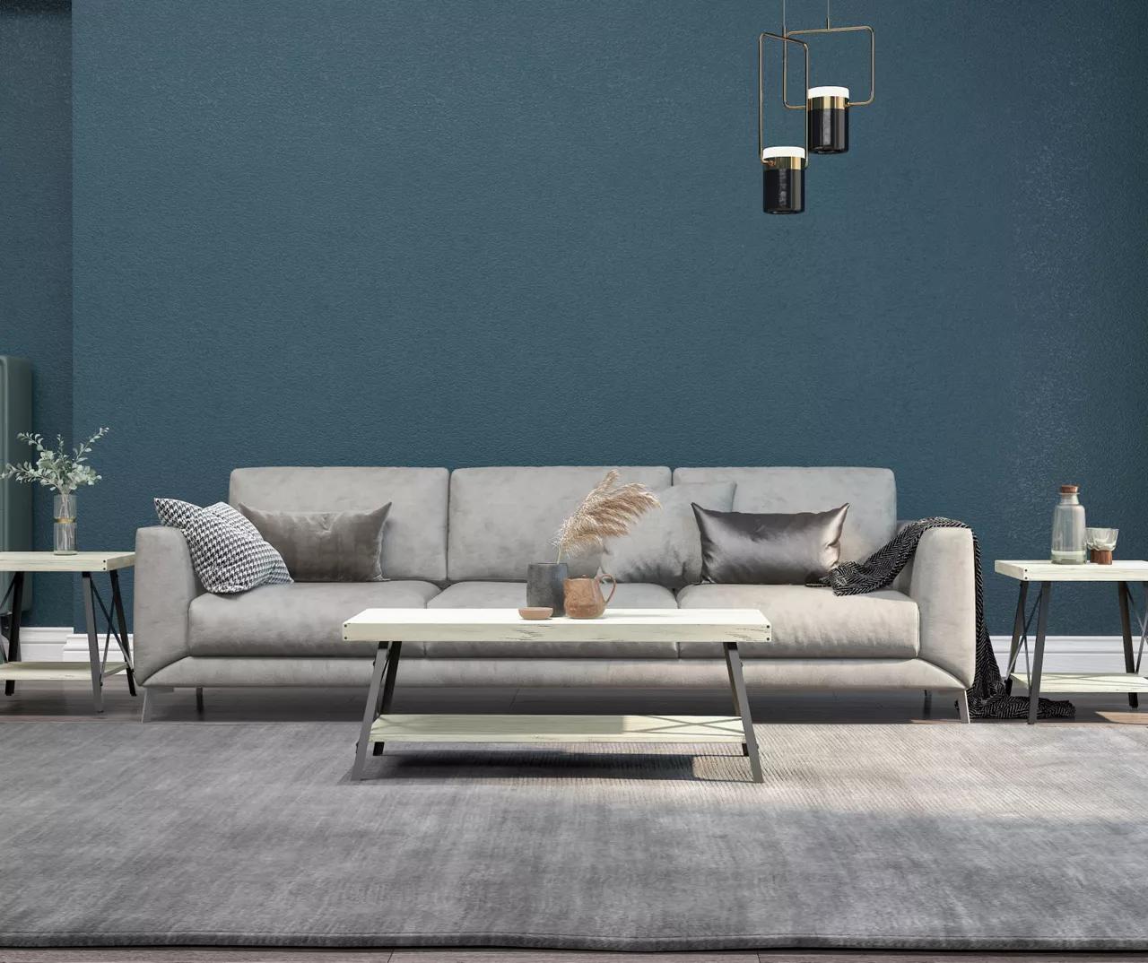 - Whitewash and steel gray color palette exemplifies modern rustic style
